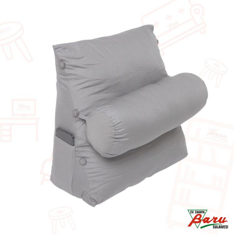 Function : Bed Side CushionSize : 45 x 45 x 20 cmStyle : Back CushionDensity : Medium SoftColor : GreyClass : CushionMaterial : Polyestre Fibre + CottonSide Pocket is Convinient and Practical