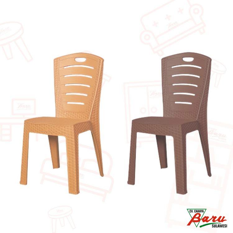 Warna : coklat tua & coklat tuaUkuran : 46x53x88cmBerat : 1 KgKeunggulan :+ Bahan plastik polypropylene+ Kaki anti selip+ sandaran yang nyaman+ kuat sampai 100kg+ Anti rayap, anti jamur, anti air