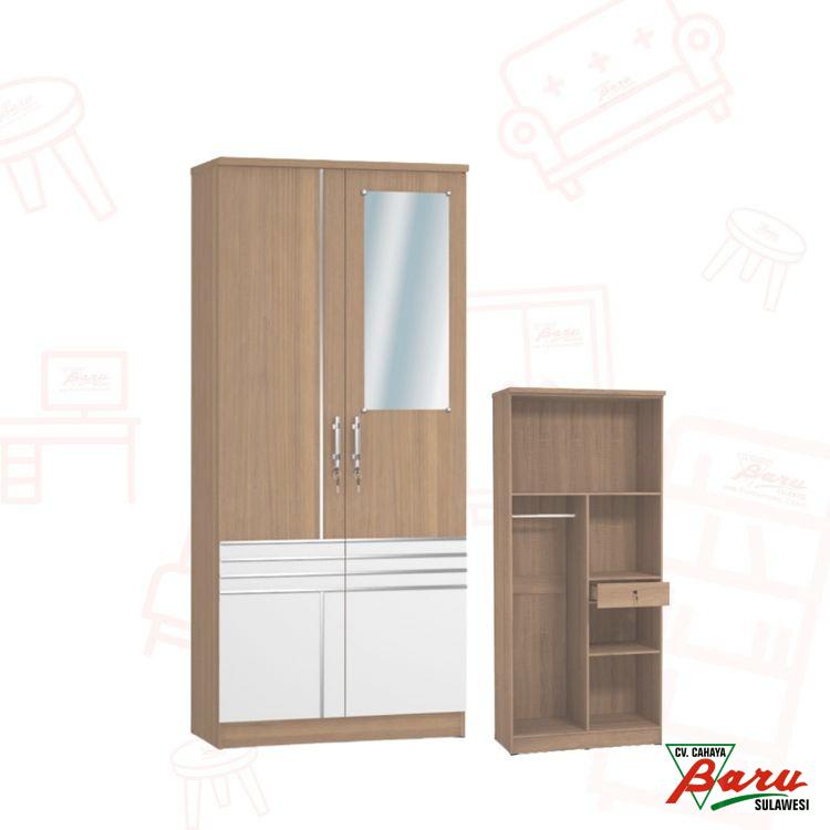Bahan : Partikel Board, PaperWarna : Brown, White HiGlossUkuran : 80x43x180,9cmBerat : 44KgKeunggulan :+ Dilengkapi laci pada bagian dalam+ Dilengkapi dengan handle besi + kunci+ Gantungan besi chrome+ Terdapat cermin
