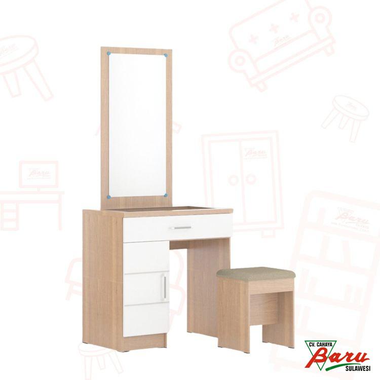 Bahan : Partikel Board, PaperWarna : White HiGloss, BrownUkuran : 75x39x163,2cmBerat : 38KgKeunggulan :+ Dilengkapi Laci bersekat+ Dilengkapi cermin panjang