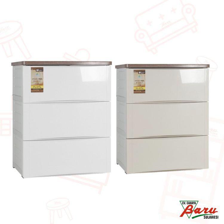 Warna : Cream / WhiteUkuran : 60,7x48x77,5cmBerat : 14.17KgKeunggulan :+ Terdapat 3 laci besar+ Teksture glossy+ Penyimpanan luas+ Laci sliding (mudah ditarik)+ Mudah dibersihkan+ Anti rayap, anti jamur, anti air