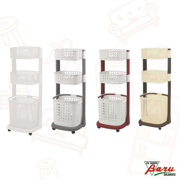 - Model: keranjang pakaian dengan roda dan 2 rak tambahan